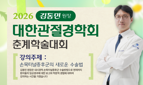 2026 김동민 원장 대한관절경학회 춘계학술대회 페이지 정보 작성자 최고관리자 댓글 0건 조회 9회 작성일26-03-27 17:45 본문 댓글목록 댓글목록 등록된 댓글이 없습니다. 목록 답변